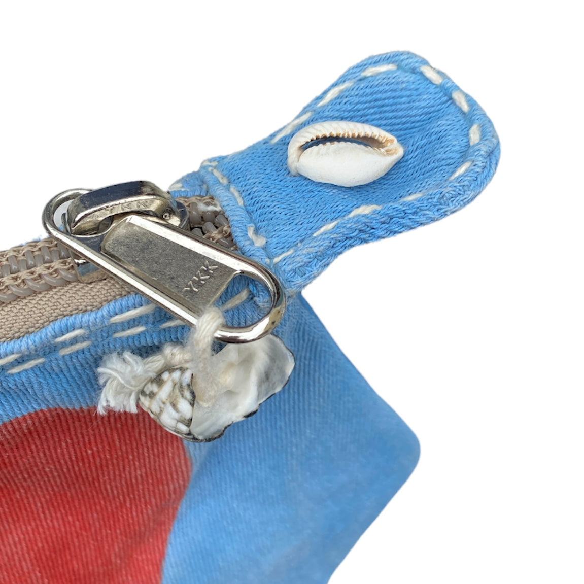 This beautiful wash bag is an everyday essential, and a perfect travel companion handmade out of recycled sailcloth. It is designed to keep your make-up collection and all your toiletries safe and waterproof or it will just as well complete a chic garment at a casual dinner or a summer party!